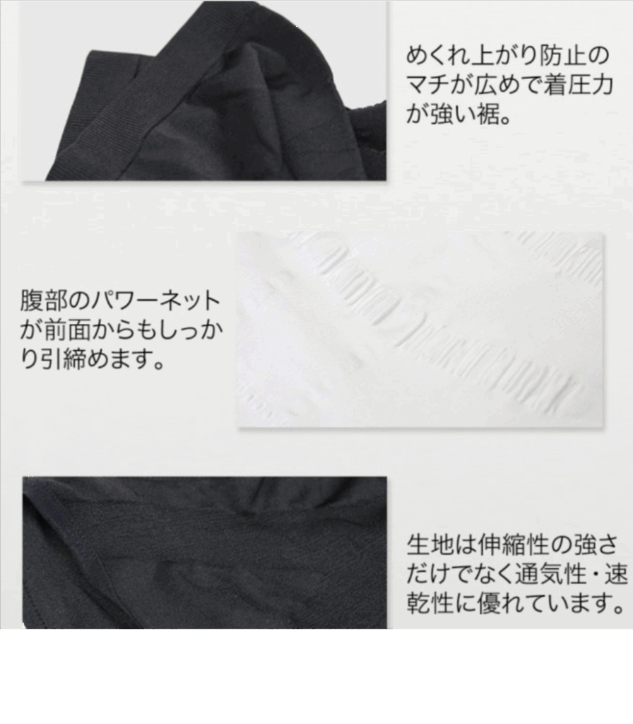 腹部の着圧による締め付けでたるみを引き締め。