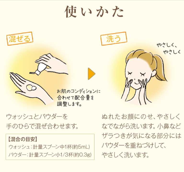 コチラ、ウォッシュとパウダーを混ぜ合わせて使用する、