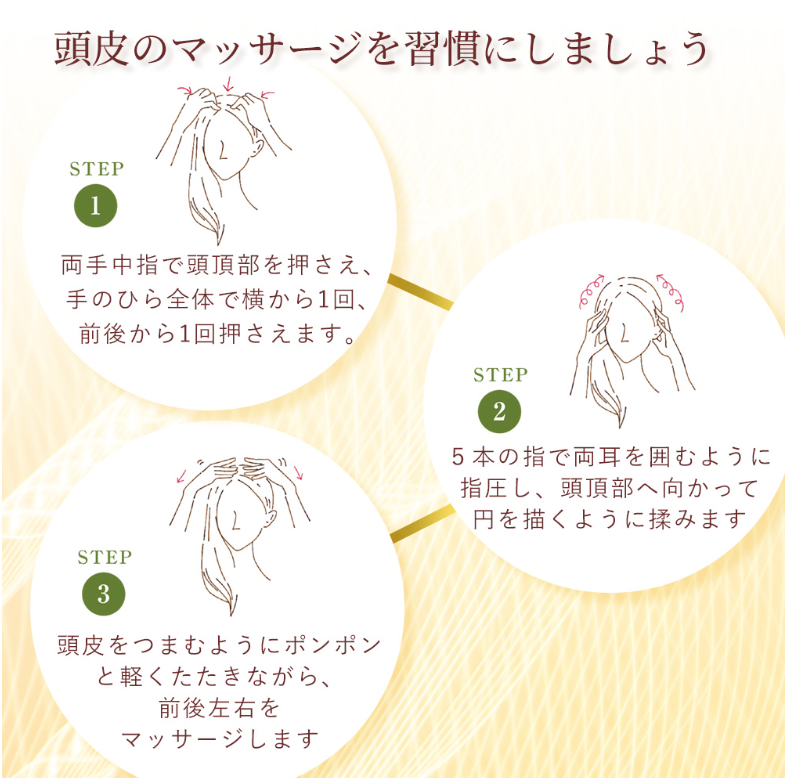 朝・晩など、適量を頭皮につけてよくマッサージしたり、