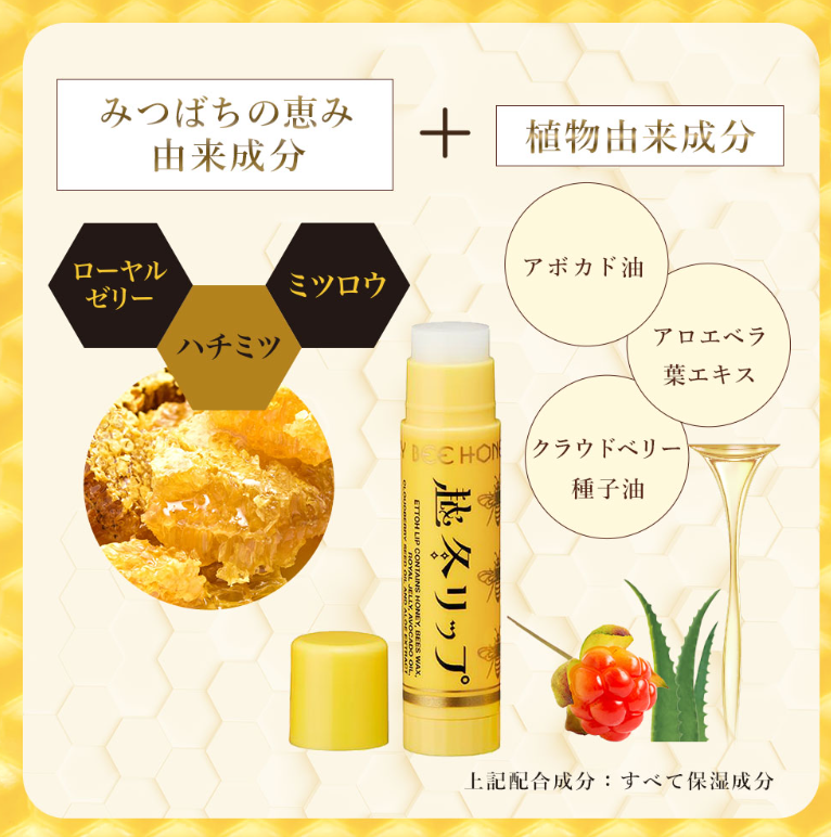 ハチミツやミツロウ、ローヤルゼリー(保湿成分)が入っており